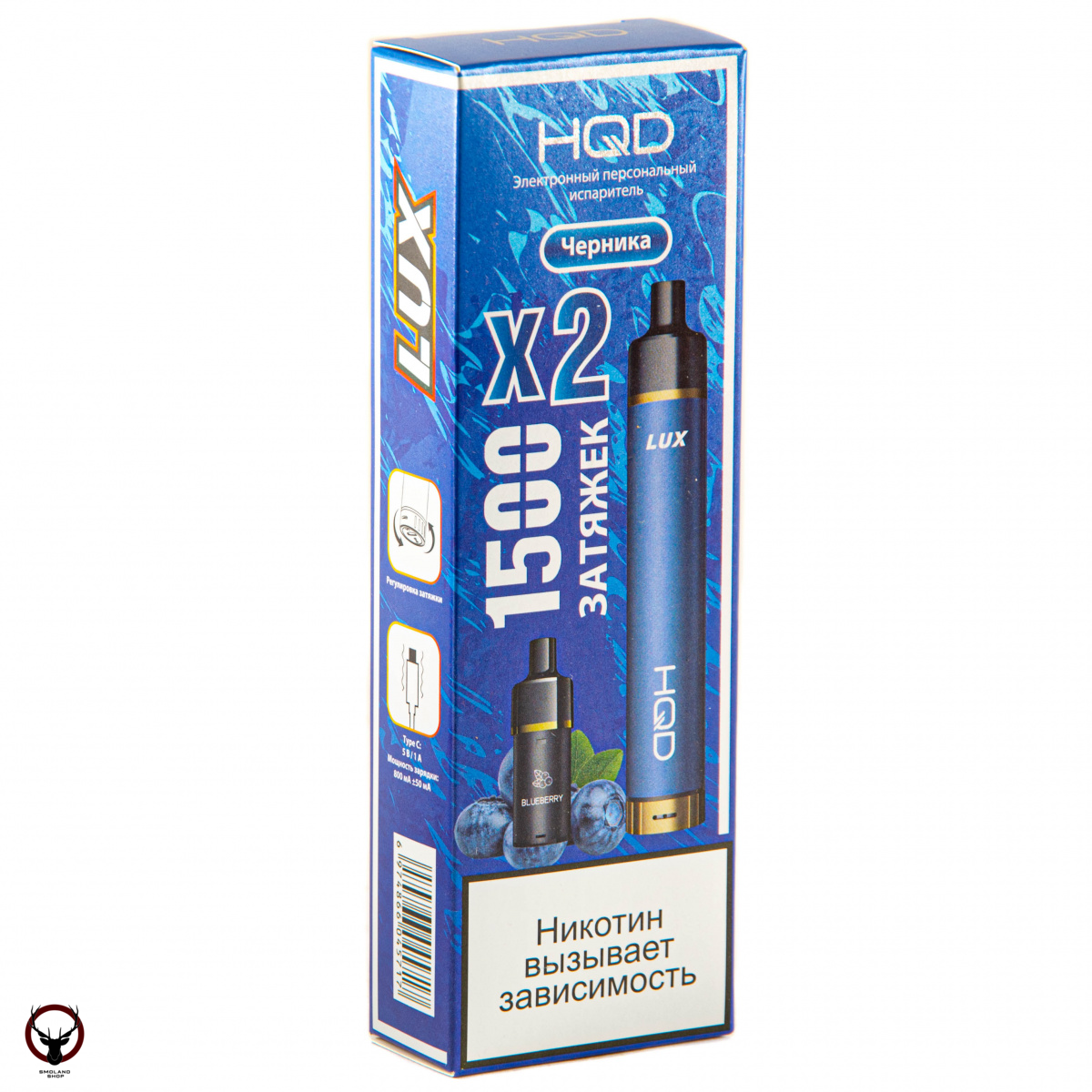 Электронная сигарета HQD LUX Черника малина (1500 затяжек, 2 картриджа)