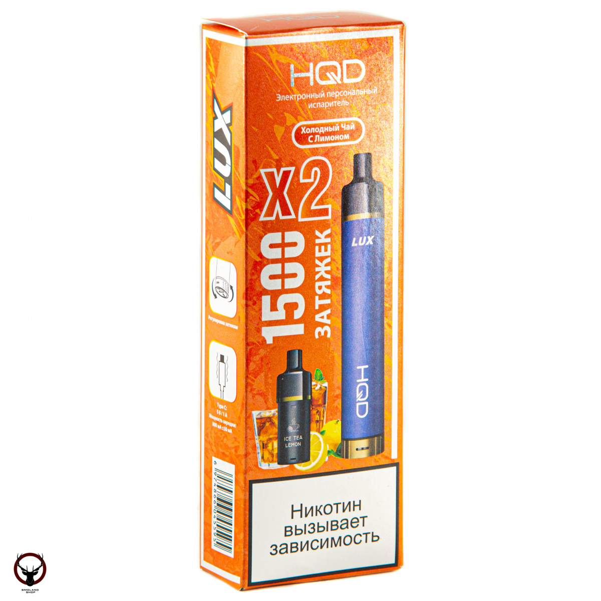 Электронная сигарета HQD LUX Сладкая мята (1500 затяжек, 2 картриджа)