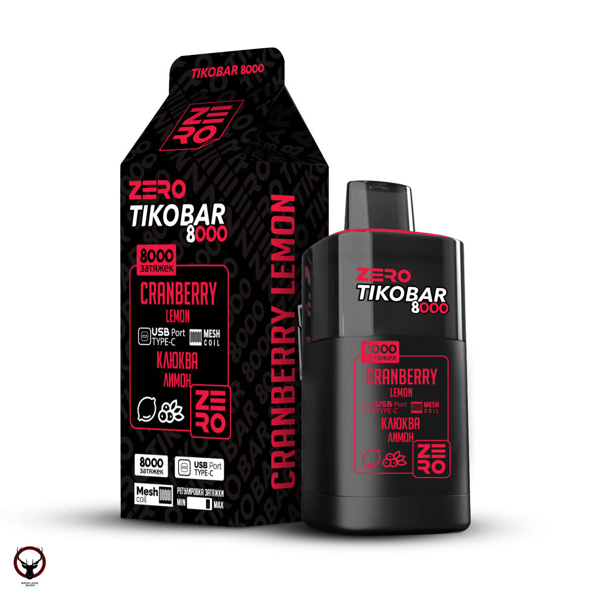 Электронная сигарета TIKOBAR ZERO Клюква Лимон 8000 затяжек